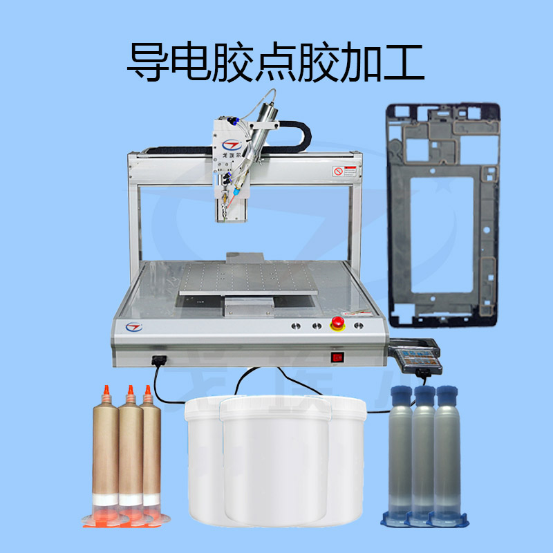 導(dǎo)電膠點(diǎn)膠加工是經(jīng)過(guò)自動(dòng)點(diǎn)膠機(jī)直接將導(dǎo)電膠水經(jīng)過(guò)氣壓涂在需要做電磁屏蔽的產(chǎn)品上面。