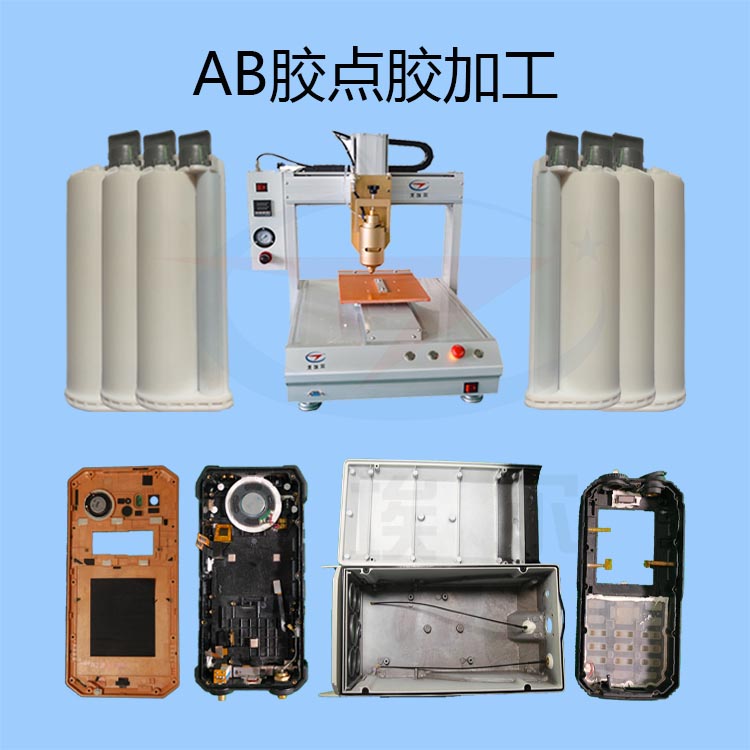 AB膠點膠加工用點膠點機又稱噴膠機,點膠機,打膠機等,是專門對流體進行控制,并將液體點滴、涂覆、灌封于產品表面或產品內部的自動化機器。點膠機主要用于產品工藝中的膠水、油以及其他液體的粘接、灌注、涂層、密封、填充、點滴線形、弧形、圓形涂膠等。