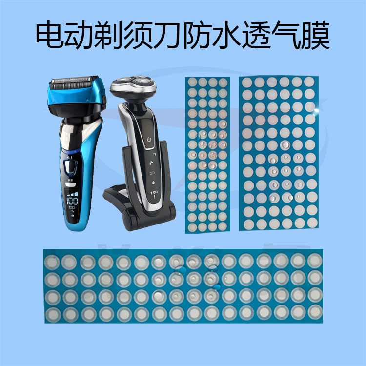 要做到全身水洗,一方面就是要做好電動剃須刀機殼的密封性,可使用一體化成型減少裝配件數量,裝配式密封處可采用點膠加工工藝,另一方面就是在電路板部分和電池部分做一個密封腔,或者說在做好完全密封的殼體上開透氣用小孔,然后貼附具有防水與透氣功能的電動剃須刀防水透氣膜原材料來阻止水的侵入,與此同時又能保證電機和充電電池(充放電過程)的良好的透氣性能。如今大多數剃須刀上的刀頭部分基本上都能拆下來用水清洗。機身里有沒有電動剃須刀防水透氣膜才是關鍵,有電動剃須刀就能可以全身水洗,沒有就是不具備全身防水能力。