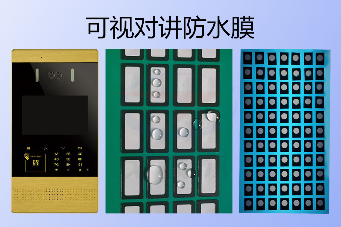 對于可視對講整體防水,一般是防水密封硅膠圈或者防水密封點膠加工(主要是鍵盤與殼體上下結構)來做的,可視對講揚聲器(喇叭)與MIC麥克風的防水,基本上都是采用戈埃爾可視對講防水膜(