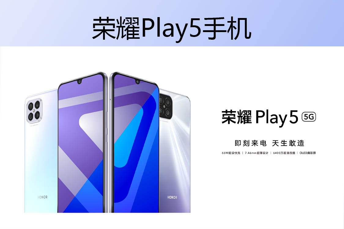 2021年5月18日晚19:00,榮耀發布了Play5系列手機,榮耀Play5擁有單電芯雙回路的66W超級快充,處理器為中端的天機800U,拍照方面為6400萬像素的后攝四攝與16MP前攝,屏幕采用的是萊茵低藍光認證的6.53英寸廣色域OLED真彩屏,搭配了屏內指紋解鎖、智慧雙5G及多功能NFC、超級夜景算法等功能,共有冰島幻境、鈦空銀、幻夜黑三種配色。榮耀Play5防水等級在官網是沒有明顯提到的,因此在手機使用過程中要注意防水,避免手機進水而不能使用。
