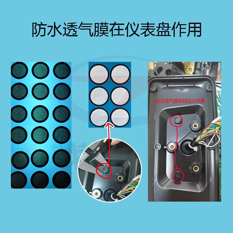 儀表盤中的電子元件在工作的時(shí)候,熱量就會(huì)在設(shè)備殼體內(nèi)部積聚,這樣導(dǎo)致壓力增大。如果沒有防水透氣膜泄壓排氣使得殼體內(nèi)外壓迅速平衡。從而達(dá)到儀表盤使用的壽命。