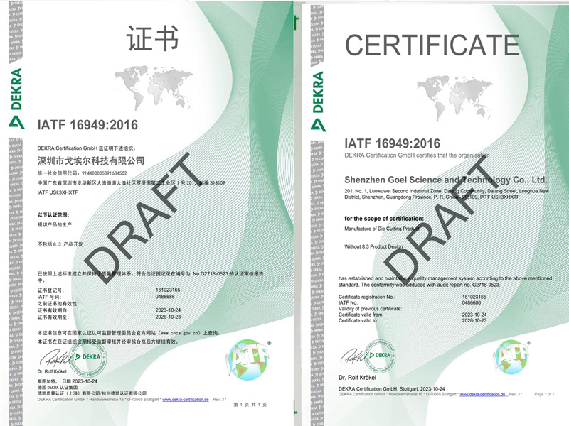 戈埃爾科技榮獲IATF16949汽車行業(yè)質(zhì)量體系認(rèn)證證書